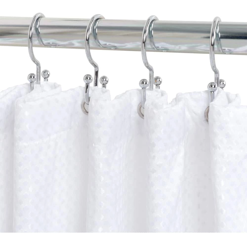 These For Living Chrome Double Shower Curtain Hooks are an all-in-one solution for hanging a decorative shower curtain and shower liner. The innovative double-hook design holds a shower curtain and liner on separate hooks. These silver chrome hooks glide nicely along any standard shower rod and they are easy to install. The hooks come in a package of 12 to conveniently match the number of holes on standard shower curtains and curtain liners.