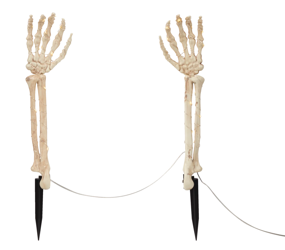 - For Living Light Skeleton Hand Stakes features 40 starry warm white LED lights
