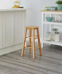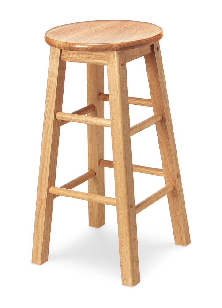 - Four-legged stool with a natural wood colour finish