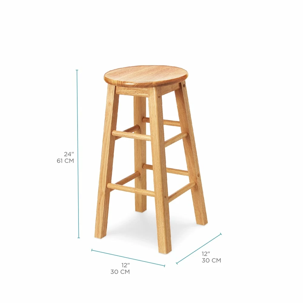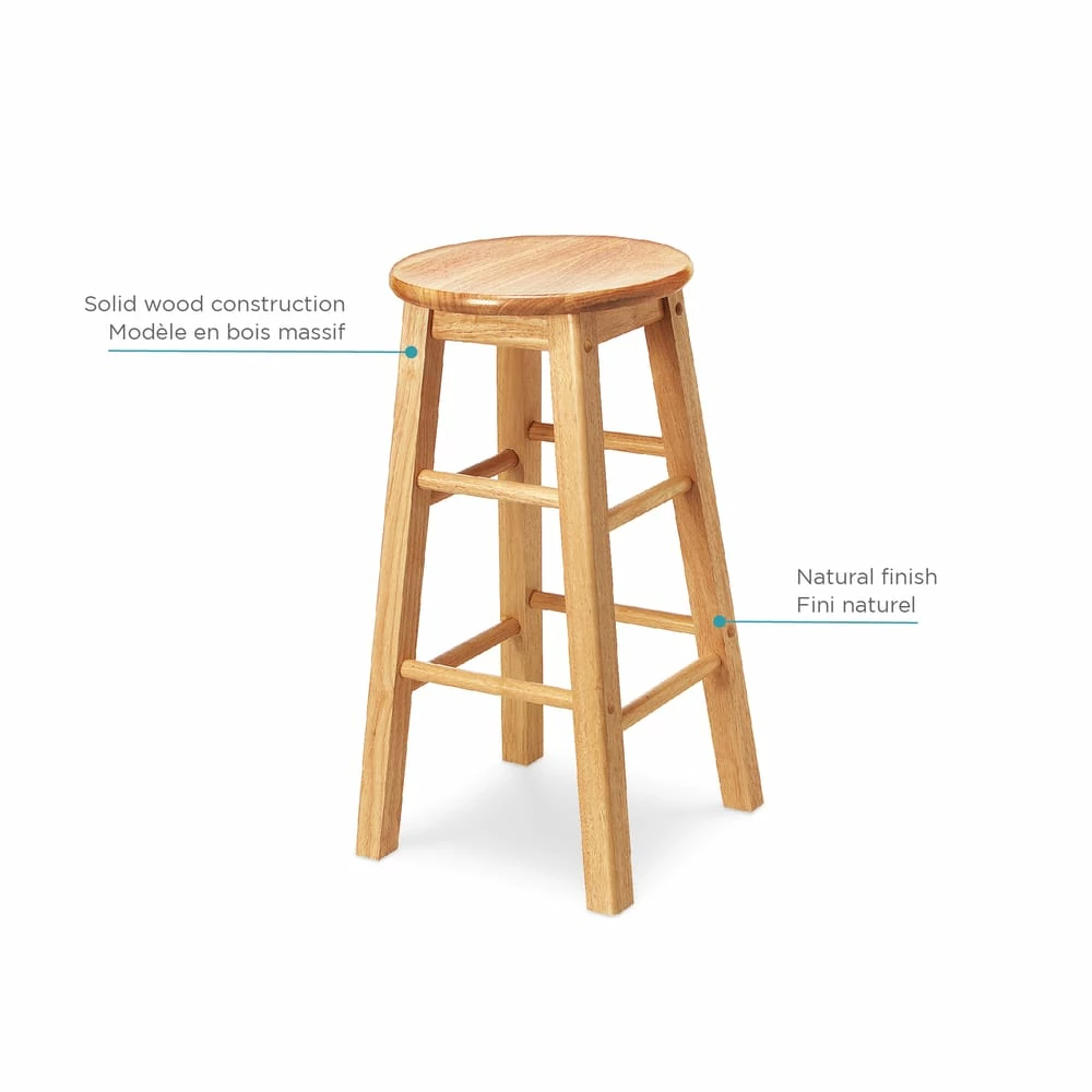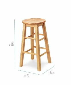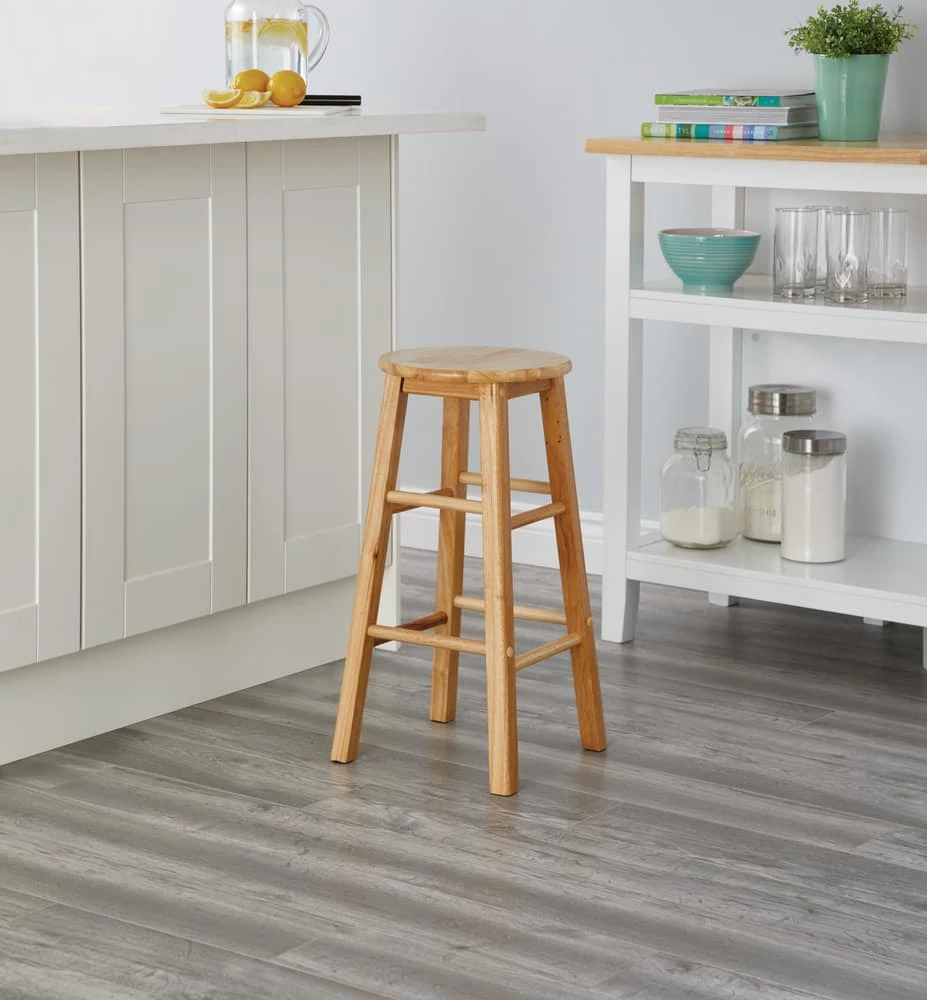 Add seating at home or work with this For Living Solid Wood 24″ Bar Stool. The sturdy round top and four-legged design provide durability and a comfortable seat, making this counter stool a great seating option for your home bar or kitchen island. The compact design easily tucks away when not in use and provides portability. Featuring a natural wood finish, this rustic bar stool adds warmth to a variety of decor styles.