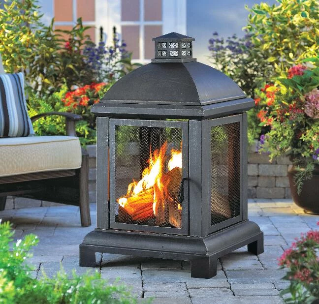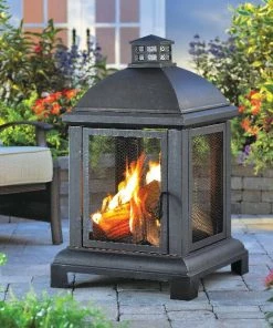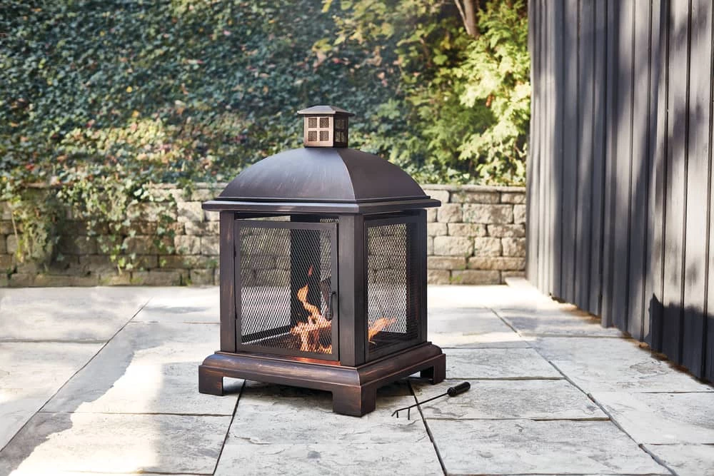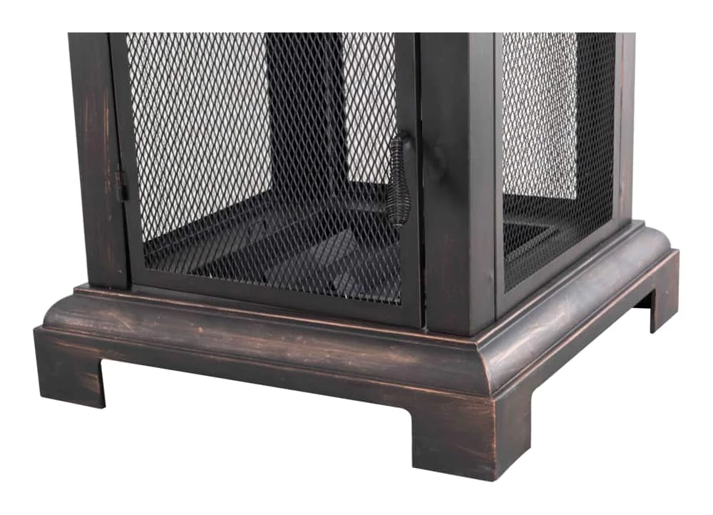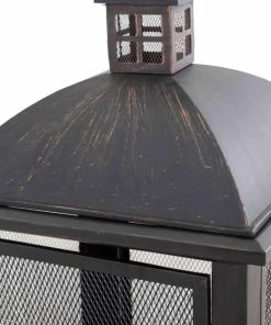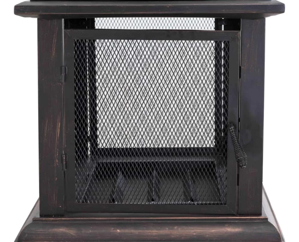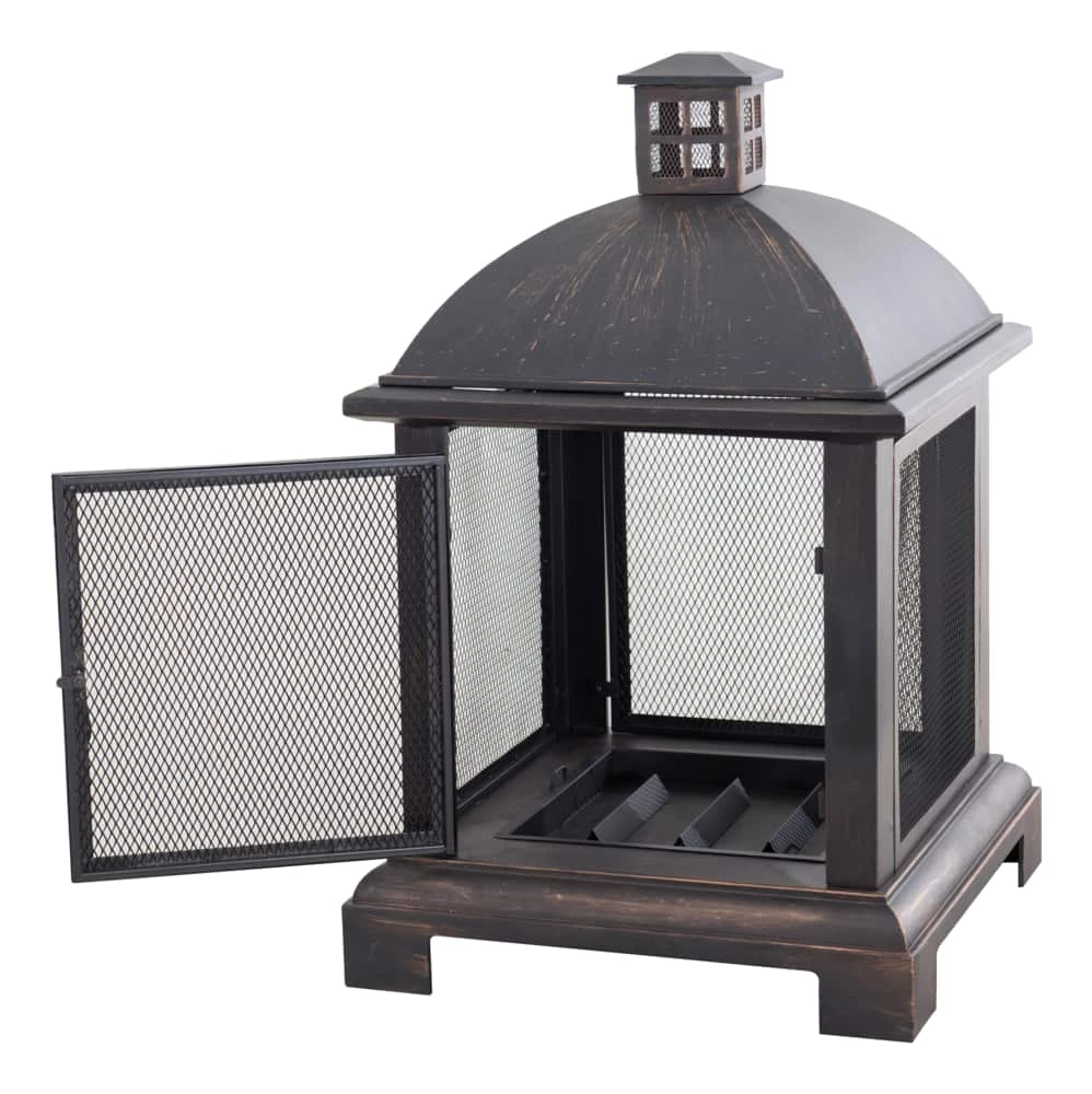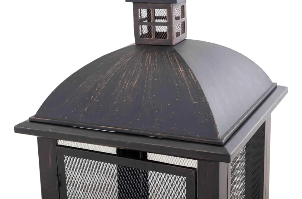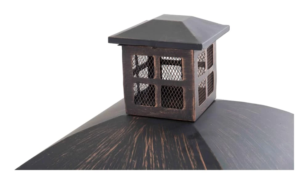 Create memorable outdoor memories around the For Living Marseille wood burning fire pit. Featuring a durable steel construction and stylish antique black finish, this square firepit is designed to provide years of entertainment at your backyard gatherings with family and friends. This outdoor fire pit is easy to assemble and lightweight enough to transport wherever you want to get the fire started. The steel mesh walls give you and your guests an impressive 360° view of the fire inside, making it easy to add ambiance from every angle. The Marseille backyard fire pit features a wood rack to help position firewood and a steel dome top to keep flames and embers safely contained and protected from rain. It also includes a poker for adjusting logs and kindling as needed. When it’s time to make s’mores with the kids or enjoy summer evening drinks with friends, this wood burning fire pit is a fun addition to any patio or yard. The sturdy and attractive steel fire pit can also be used to display candles. With a generous 40″ height and 26″ width and depth, this firepit is an ideal focal point for outdoor entertaining.
