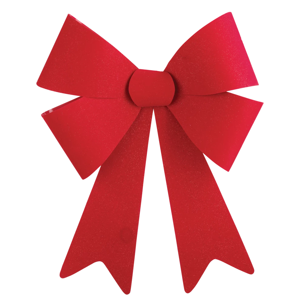 Place the For Living Giant Red Glitter Bow anywhere throughout your holiday décor to add an eye-catching finishing touch. It’s made from stiff velvet, allowing it to be shaped and adjusted to your liking. This red bow also has a glittery exterior, which adds a sparkling effect that is sure to make a statement within your Christmas display. It makes a beautiful addition when paired with lights or garland along fireplaces, on railings or on your tree.