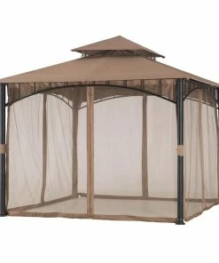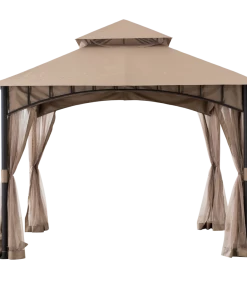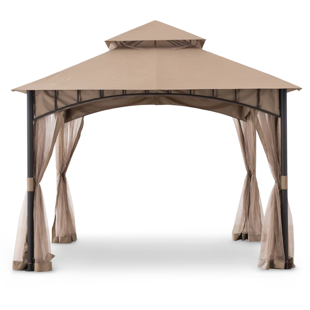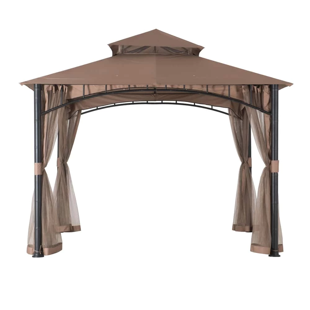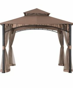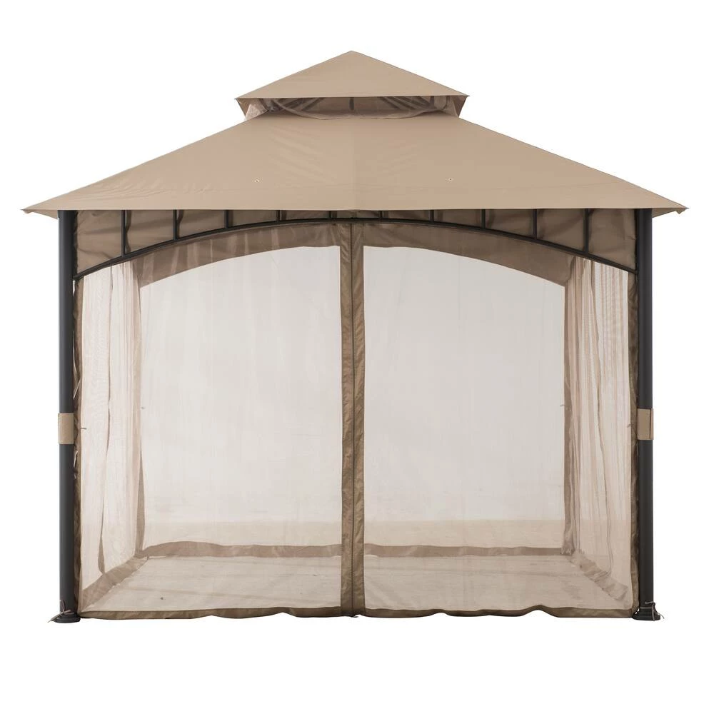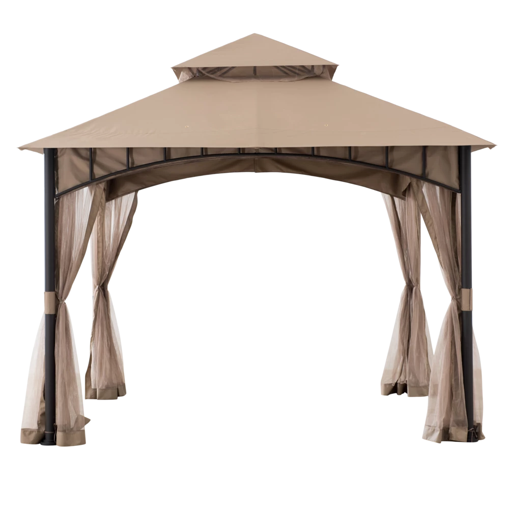 The regal For Living Summerland Outdoor/Patio Soft-Top Gazebo with Mosquito Net will get your guests talking this summer. This majestic outdoor gazebo has a rust-resistant black steel frame that’s powder-coated for added durability. The frame itself is uniquely designed with stunning arches and a vaulted roof. The light brown canopy is made of water-resistant polyester, so rain will slide right down. Worried about bugs? This gazebo includes handy mosquito netting to keep insects out and fun in. The canopy and netting can be removed, too. Measuring 10′ x 10′, the gazebo weighs 137 lbs (61.5 kg), making it sturdy enough to stand tall in mild wind without blowing over. This outdoor soft-top gazebo coordinates well with the CANVAS Vintage Edison String Lights 10 Count (0527008) and is easy to set up – no need for any special skills or tools beyond what’s included in the box. The soft-top gazebo and related canopies, netting and walls cannot be left outside year-round. To extend the life of your product, dismantle and store it at the end of each season and in advance of extreme weather conditions.