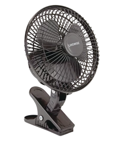 Stay cool while you work, without losing any workspace, using this For Living Tilt-Head Table/Desk Fan. This tilt fan easily clips on the edge of your desk to deliver a refreshing breeze. It has two-speed settings as well as a vertical tilt design to direct the flow of air. This table fan comes with a slider to control the speed, a 6′ cord for easy setup and a metal grill for safety.