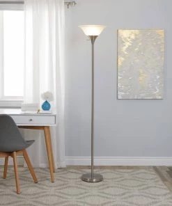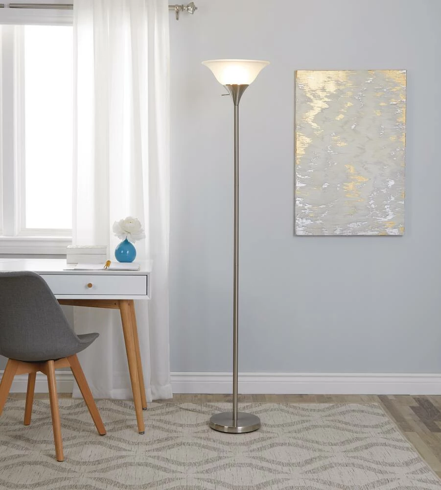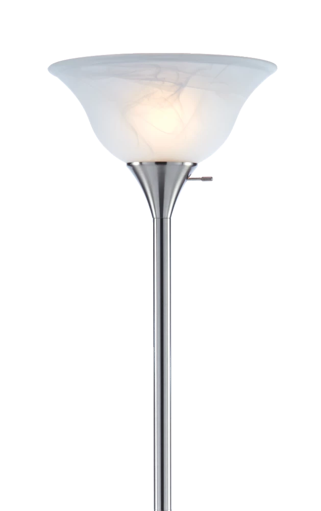 - The For Living Torchiere Floor Lamp features an alabaster glass shade that diffuses light for a stylish aesthetic