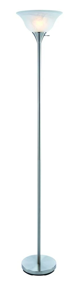 The For Living Torchiere Floor Lamp features a simple, elegant design that adds extra style to your room without being overstated. The body of the standing lamp is finished in brushed steel for a soft sheen that is sure to complement any contemporary décor. This modern floor lamp is topped with a lovely alabaster glass shade that gently diffuses the light as it is cast upward, resulting in a warm, comfortable glow that will surely impress. Measuring 12 inches in diameter and 70 inches tall, this floor lamp can be added to a tight, dark corner in your living room or den – or consider it as the focal piece in your guest bedroom for added style points. Choosing the lamp that suits your space is a big decision – not only is it a practical fixture in your home that you will likely use every day, but it is also a focal piece that is sure to draw attention from house guests whenever they come over for a dinner party, movie night, or overnight stay in your guest bedroom.