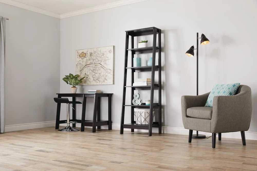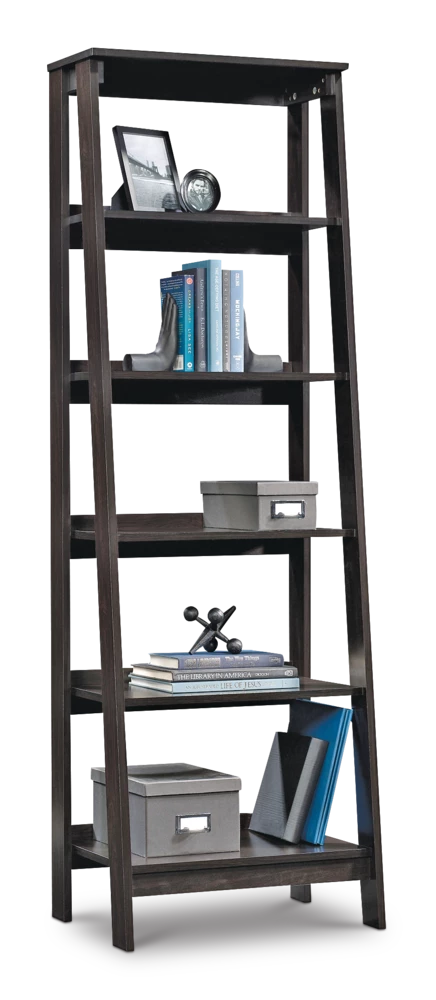 Featuring five tiers of shelving, the For Living Trestle Bookcase offers ample storage and display space for your books, house plants, collectibles, framed photographs, and other knick-knacks. The vertical storage design features five fixed shelves in a ladder-shelf style, ensuring exceptional stability in any space. The raised shelf at the bottom allows for easy sweeping or vacuuming beneath the shelf, so you can keep your space tidy. Whether you’re a student or home-office worker with plenty of books and binders in need of storage or you simply want to display your favourite items in your living room, bedroom, or family room, this bookcase has you covered. The cinnamon cherry finish offers a warm, comfortable aesthetic that effortlessly complements any traditional or modern decor. This 5-shelf bookshelf is compatible with all items in the Trestle collection, including the Trestle media console and desk, to help you achieve a cohesive look in any room. You can even combine multiple bookcases side-by-side to add vertical storage space where you need it most. This unit comes with everything you need to assemble it for quick and easy setup.