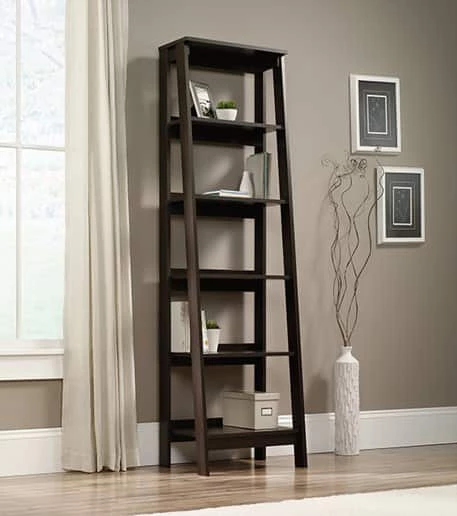 - The For Living Trestle Bookcase features five tiers of shelving for ample storage and display space