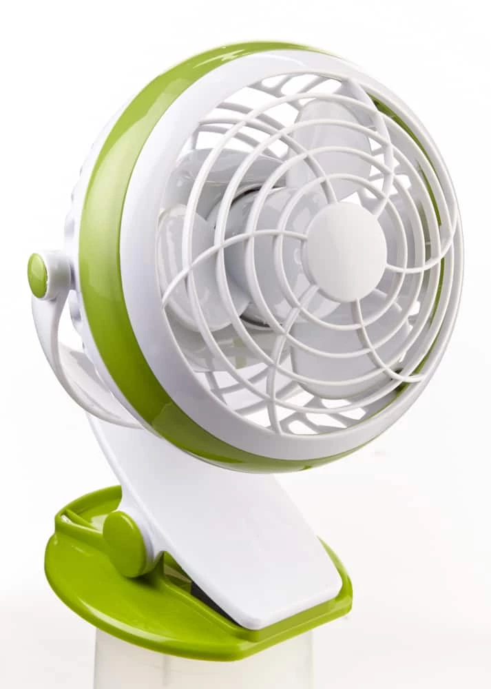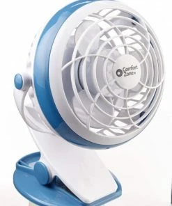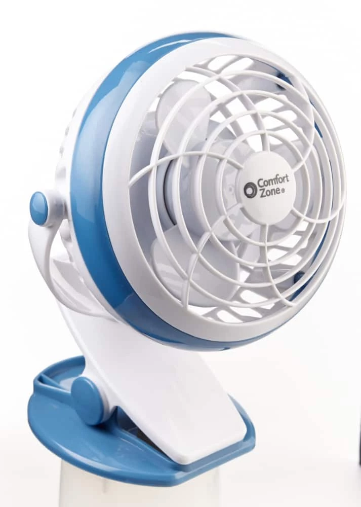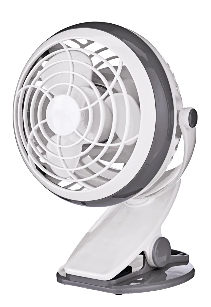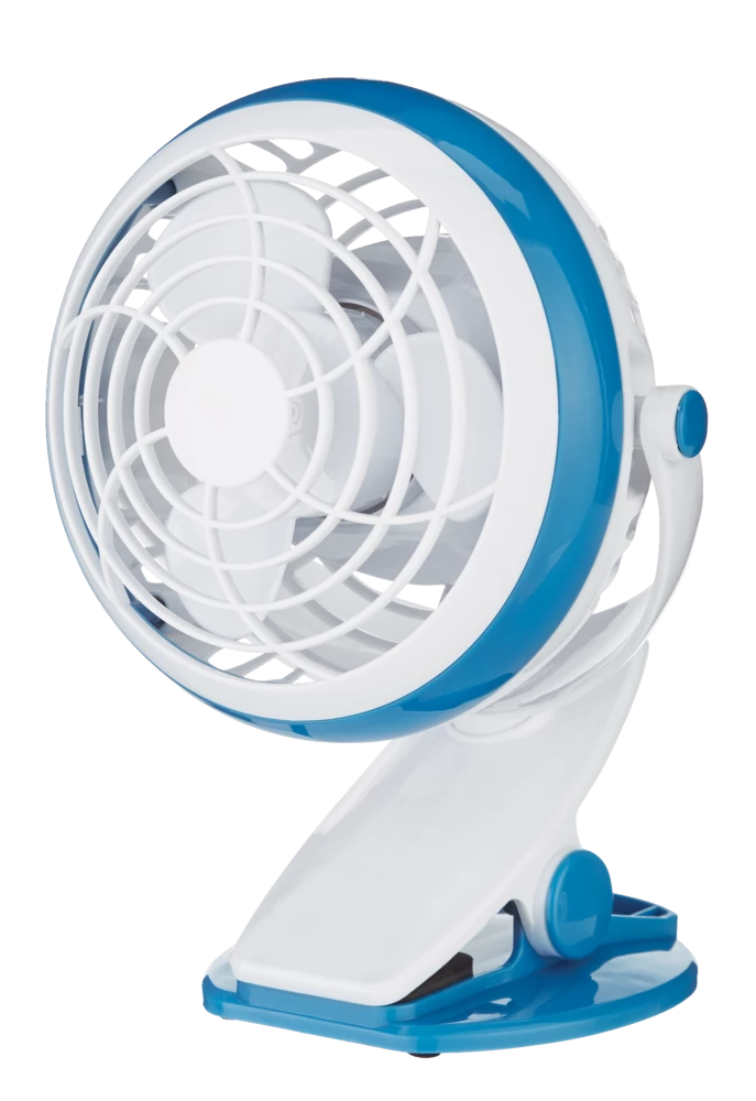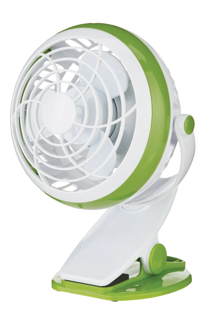 The personal-sized For Living USB & Battery Table/Desk Fan with Clip is designed to cool you down at your desk. This home desk fan adjusts 360ᵒ to direct the airflow where you want it, and it features a two-way clip to firmly secure it to a tabletop. Available in multiple colours, this 4″ (10 cm) battery-powered desk fan runs off the power of a computer, laptop, or car USB adapter. A USB cord is included.