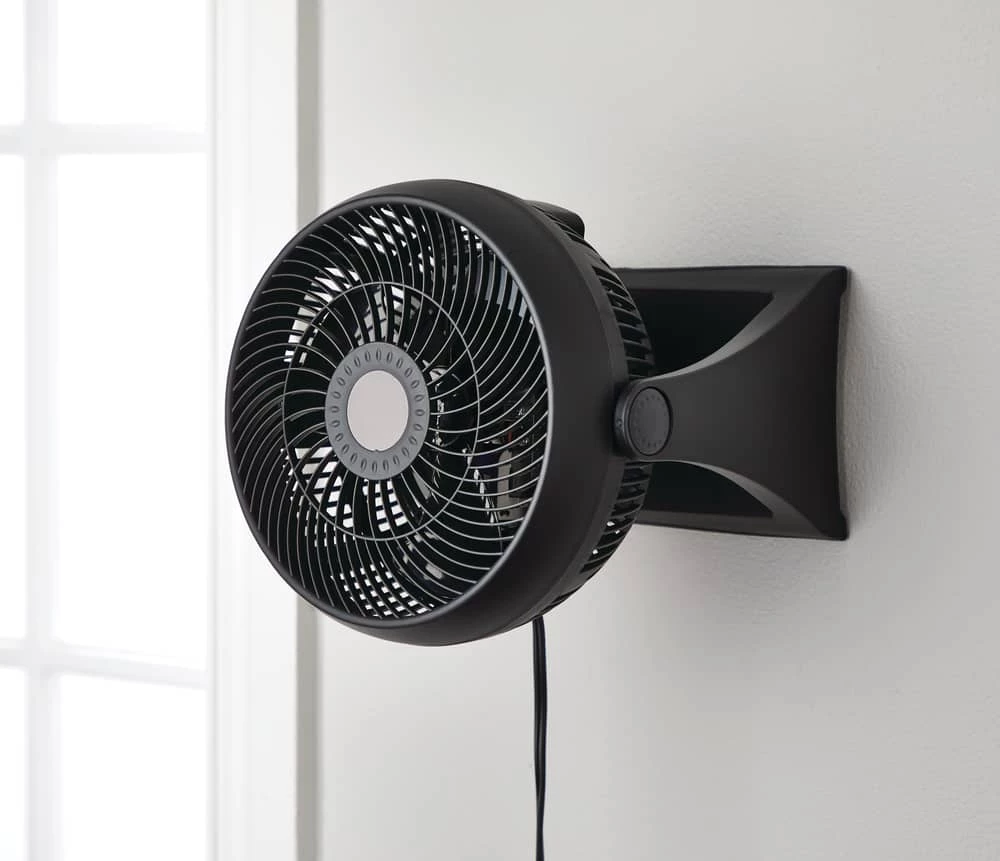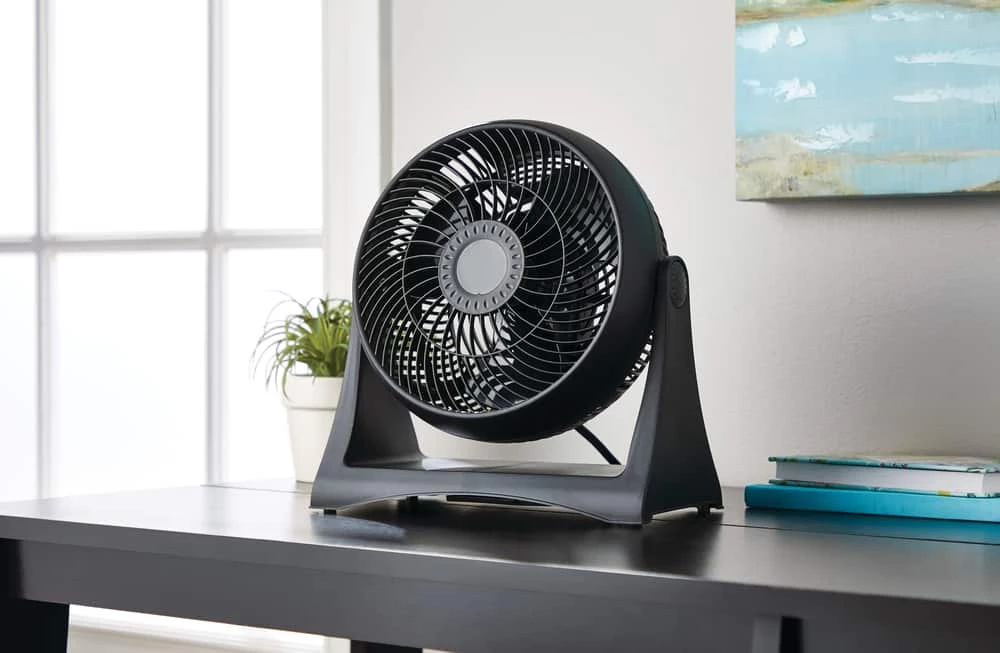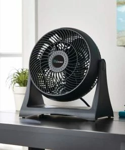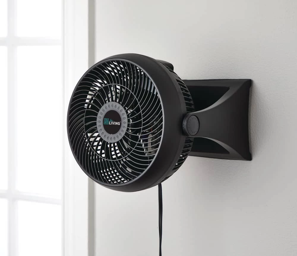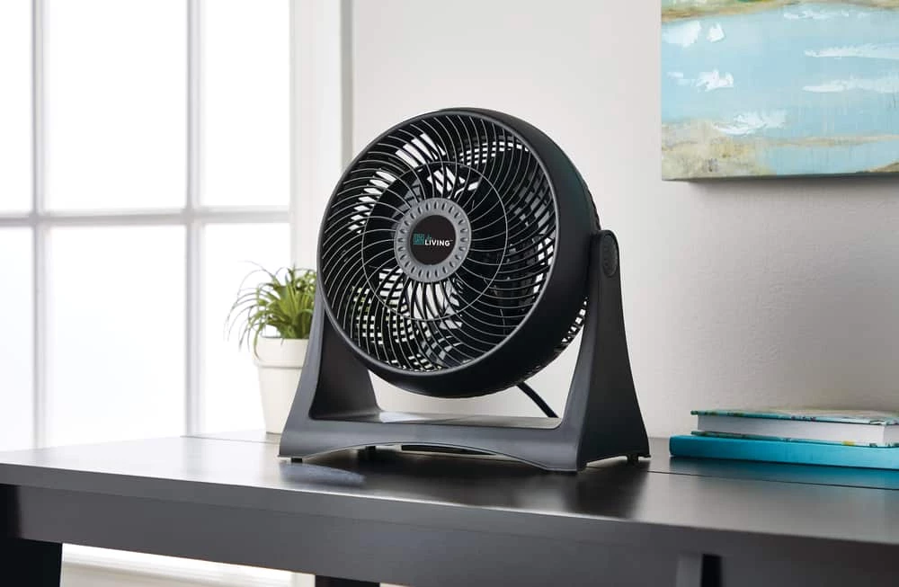 The compact For Living Wall Mounted Portable Turbo Table/Desk Fan features a turbo power function to improve the air circulation of rooms up to 200 sq. ft. (18.58 m²) . In an easy to match black colour, this portable table fan has a 180-degree tilt adjustment to direct the flow of air where you want it. This 8″ (20.32) portable fan can also be wall-mounted to save more space.
