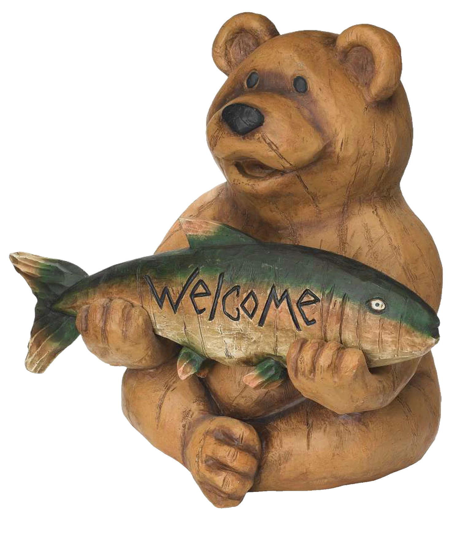 Inspired by authentic wood-carved statues, the For Living Welcome Bear Statue & Lawn Ornament is crafted from durable polyresin material, providing a lifelike look while ensuring it will hold up to harsh outdoor conditions. The hand-painted finish adds to the authentic look and feel, ensuring this bear statue will stand out in your space and be a focal point for guests. This bear statue includes a reversible “welcome” sign including both English and French.