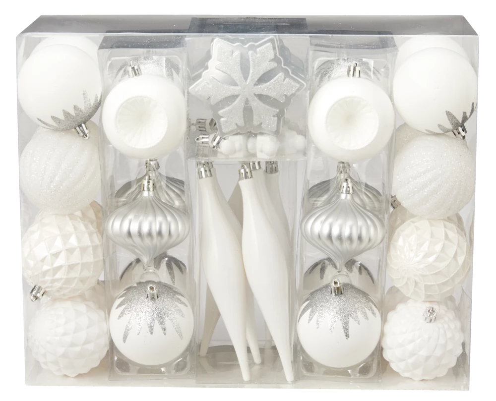 - Includes a mix of different size and shaped ball ornaments