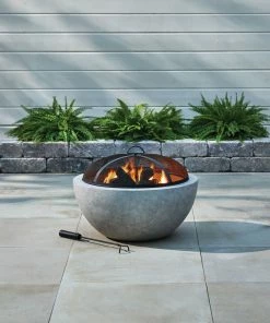- For Living 24-in Wood Firepit is made with a rust-resistant steel frame with a faux concrete finish