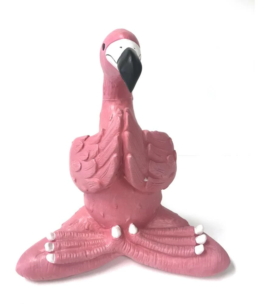 - This For Living Yoga Flamingo Lawn Ornament features a heart centre lotus pose to add a calming, decorative touch to your space