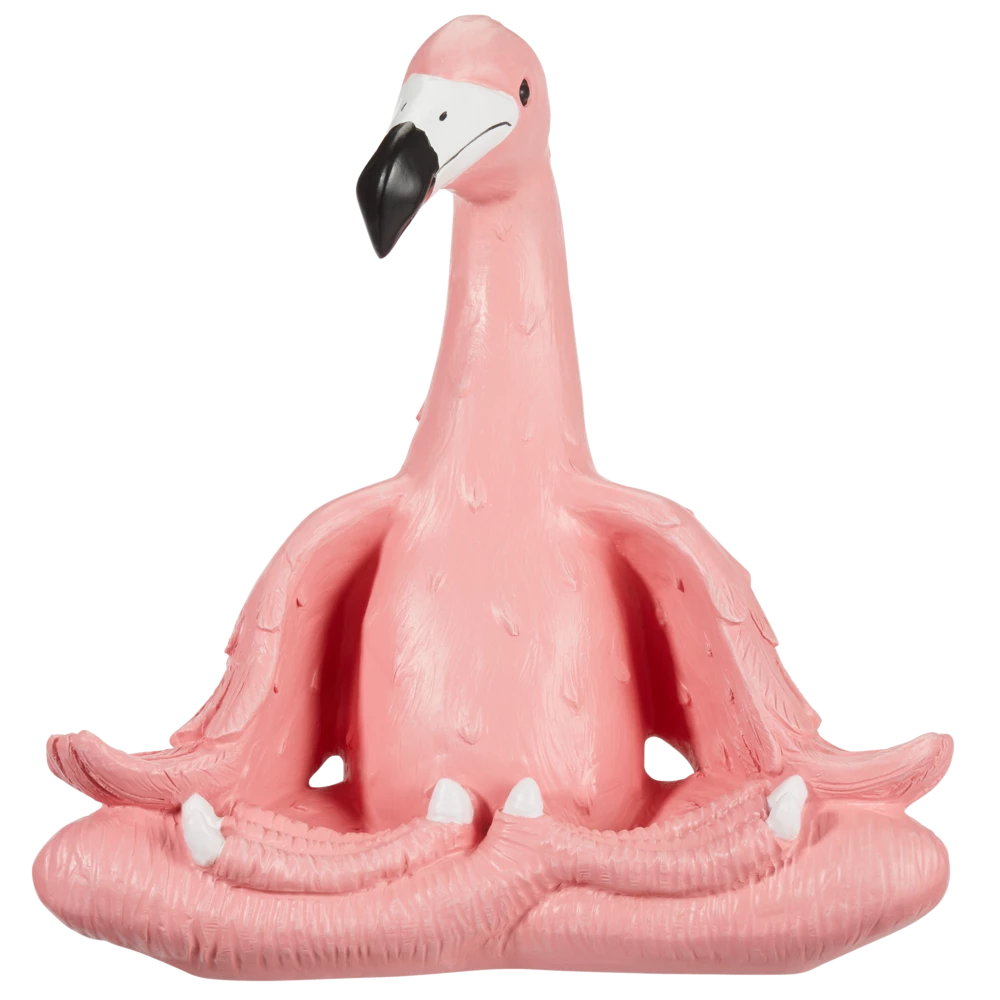 - The For Living Yoga Flamingo Lawn Ornament features a full lotus pose, adding a peaceful and decorative touch to your space