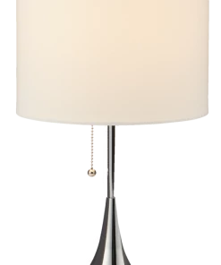 FOR LIVING Home Collection White Linen Shade Table Lamp, 18.5-in, Chrome