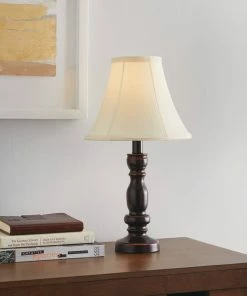 For Living Monica Flared Beige Fabric Shade Accent Table Lamp, 18-in, Black Painted Finish