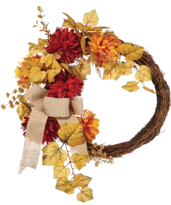 For Living Mum With Burlap Floral Vine Wreath For Fall & Thanksgiving, Multi-Colour, 20-in