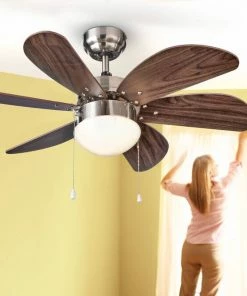 For Living Nordica Reversible 6-Blade 3-Speed Ceiling Fan With LED Lighting, 36-in, Walnut/White