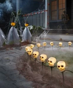 For Living Skull Stake Lights Kit With LED Lights For Halloween Decor, White, 8-in, 10-pc